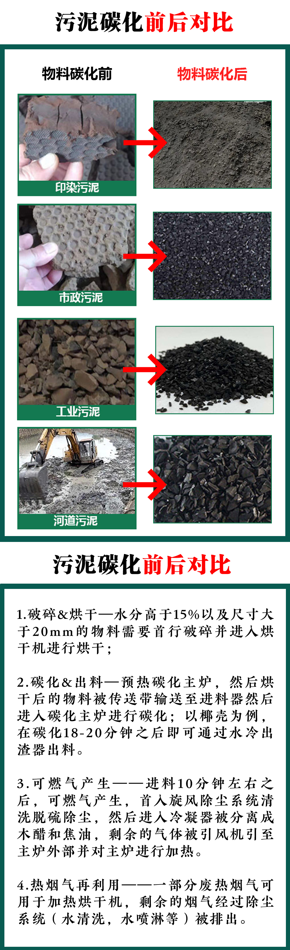 污泥連續(xù)式炭化爐可以用來處理污水廠污泥、市政污泥、河道污泥,工業(yè)污泥等多種類型的污泥,在污泥中含有有機質的情況下,都可以通過炭化熱解的方式進行資源化處理和利用。