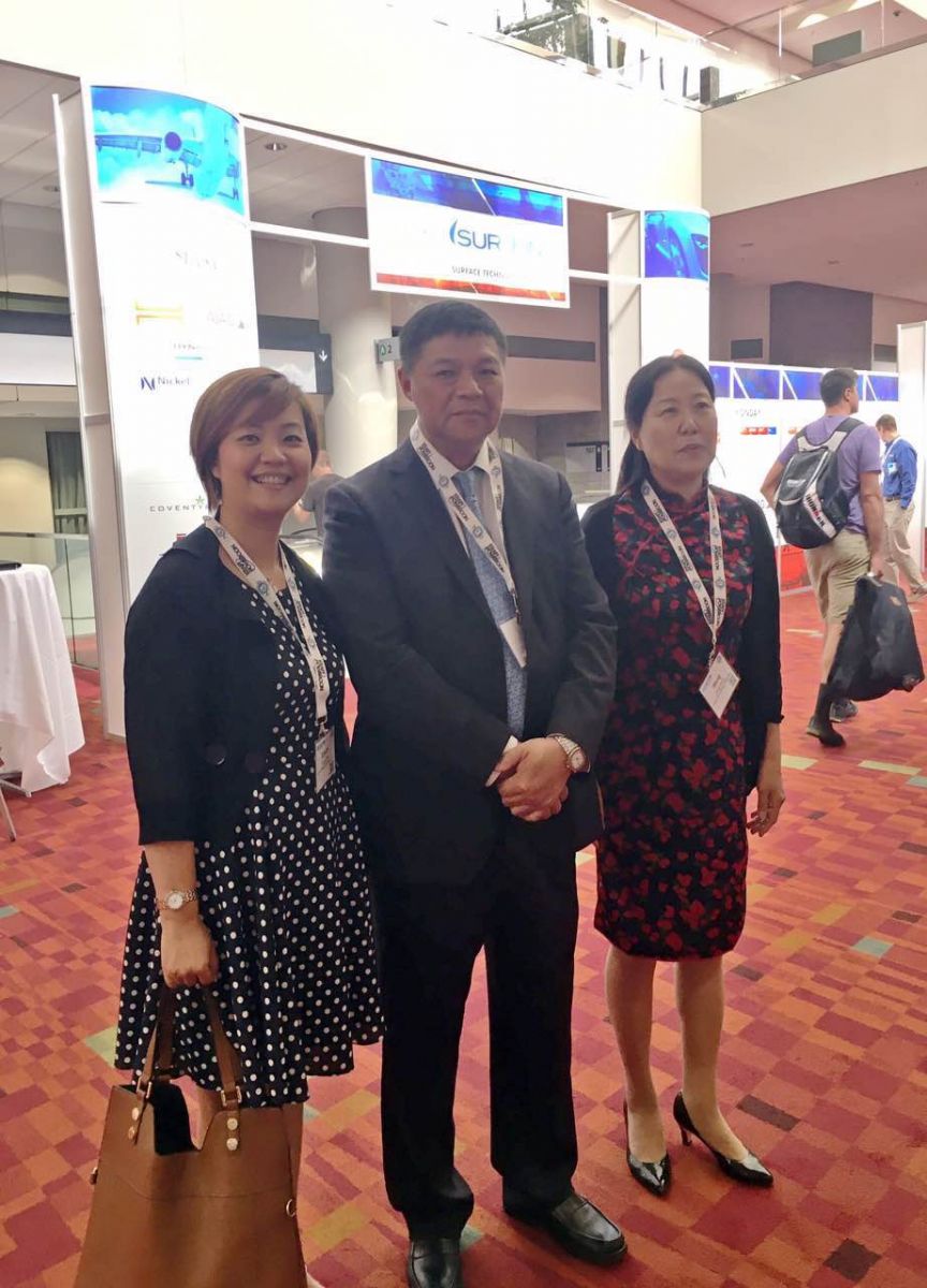2017年6月19日,松石科技朱祎瑋經(jīng)理隨中國表面工程行業(yè)代表團一同出席SUR/FIN 2017美國表面精飾年會暨展覽會。代表團由中國表面工程協(xié)會副理事長兼秘書長馬捷帶領(lǐng)。