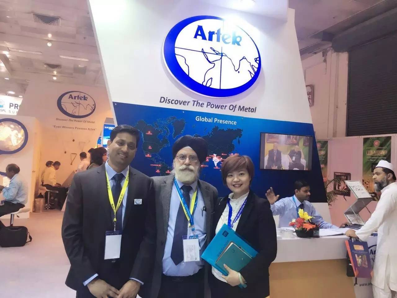 松石科技銷售經(jīng)理朱祎瑋在展會中與國外客戶合影